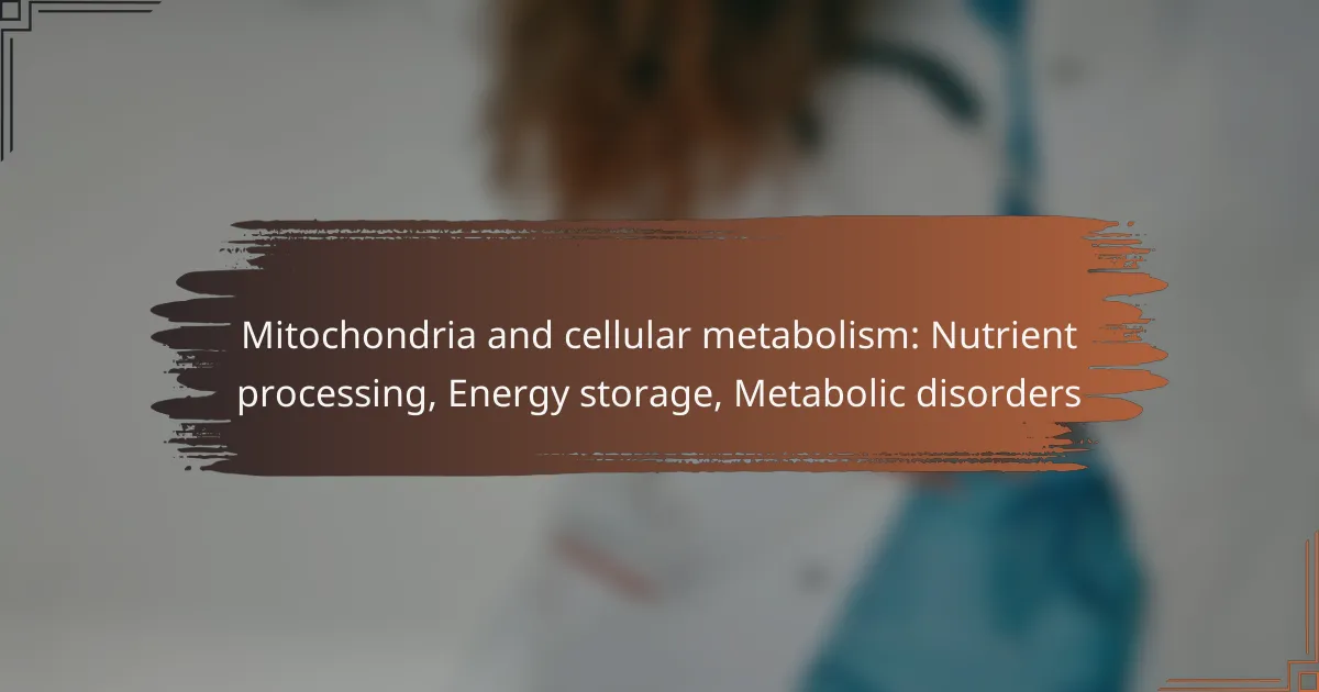 Mitochondria and cellular metabolism: Nutrient processing, Energy storage, Metabolic disorders